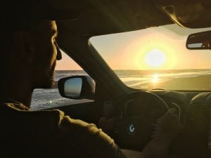 Y en días posteriores subió otra foto disfrutando de los médanos de esas playas y hace apenas un día se posteó él mismo conduciendo por la orilla del mar, de frente al sol cayendo en Monte Hermoso… “Disfrutando del camino…”.