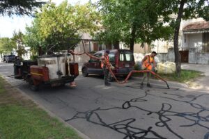 “Estamos trabajando con la selladora y a partir de ahora van a ver todos los días un trabajo de mantenimiento en las calles de la ciudad, a pedido del intendente municipal, Francisco Recoulat”, comentó la directora de Conservación de Caminos Urbanos del municipio, Luciana Bortolussi.