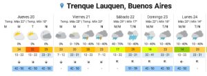 El domingo, las precipitaciones se extenderán y en particular en Trenque Lauquen tendremos un cielo mayormente nublado con lluvias débiles durante todo el día, de acuerdo al pronóstico del Servicio Meteorológico Nacional