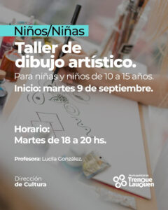 – Taller de dibujo artístico. Dirigido a niñas/os de 10 a 15 años.