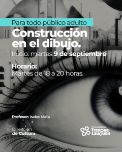-Taller de Construcción en el dibujo. Está a cargo de Isaías Mata y está orientado a adultos. Será los días martes de 18 a 20 y comenzará el martes 9 de septiembre.