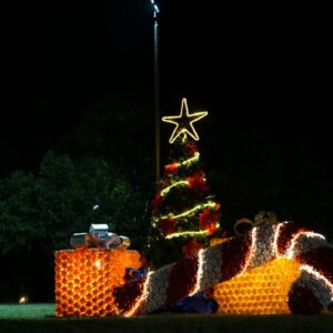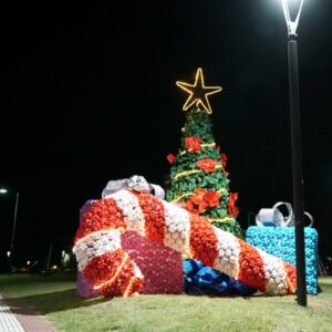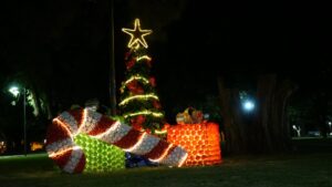 Los arbolitos de Navidad que la Municipalidad instaló junto a adornos navideños realizados con material reciclable por el personal del Polo Ambiental quedaron encendidos y ya se pueden disfrutar a pleno en cada punto de la ciudad cabecera.