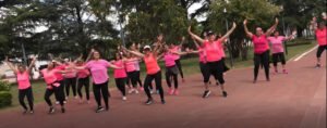 Motivadas por la lucha contra el cáncer de mama y para acompañar a las “guerreras” del grupo, las alumnas de la profe Alejandra Italia armaron y bailaron una coreo de al ritmo de la zumba para concientizar y sensibilizar a la población en este mes, y a pocos días de recordarse el día internacional de la lucha contra esa enfermedad que la Organización Mundial de la Salud impuso para cada 19 de octubre.