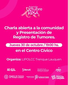 19 horas en el Centro Cívico (Oro y Villegas)/Charla abierta a la comunidad y presentación de Registro de Tumores.