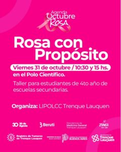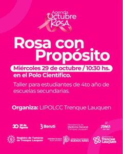 10.30 y 15 horas en el Polo Científico Tecnológico/ “Rosa con propósito”. Taller para estudiantes de 4to año de escuelas secundarias.